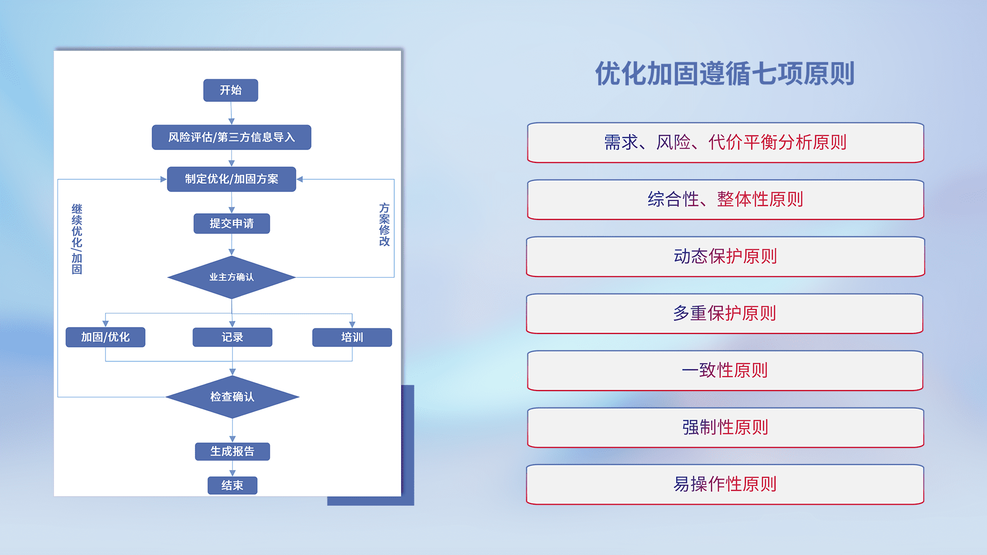 最大程度利用现有资产,,,,对评估发现的问题进行封堵与整改,,防止漏洞被利用,,,,提升整体网络安全性,,,为客户带来高标准的优化加固服务。。